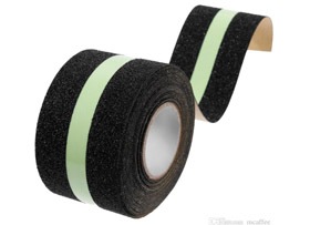 Medidas: Rollo de cinta antideslizante con y sin fotolumuniscente de 20 m X 5 cm.